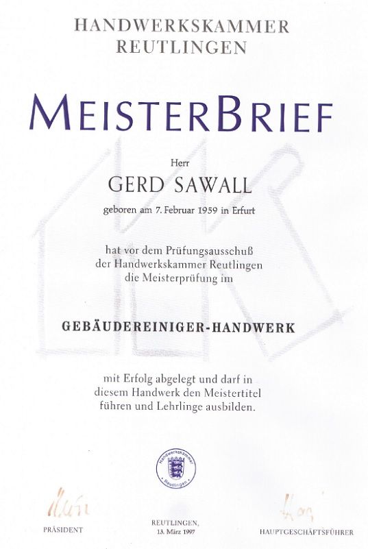 Als langjähriger Gebäudereinigermeister und Sachverständiger im Gebäudereiniger-Handwerk mit über 35 jähriger Praxis-Erfahrung in allen operativen Unternehmens-Bereichen und auf Grund meiner spezifischen Ausbildungen zur BG-Sicherheitsfachkraft sowie zum staatl. gepr. Desinfektor, kann ich Ihnen zuverlässig und fachlich verbindlich mein besonderes Knowhow und Repertoire anbieten und bin gern bereit bundesweit und auf Augenhöhe mit Respekt, in Projekten zusammenzuarbeiten.